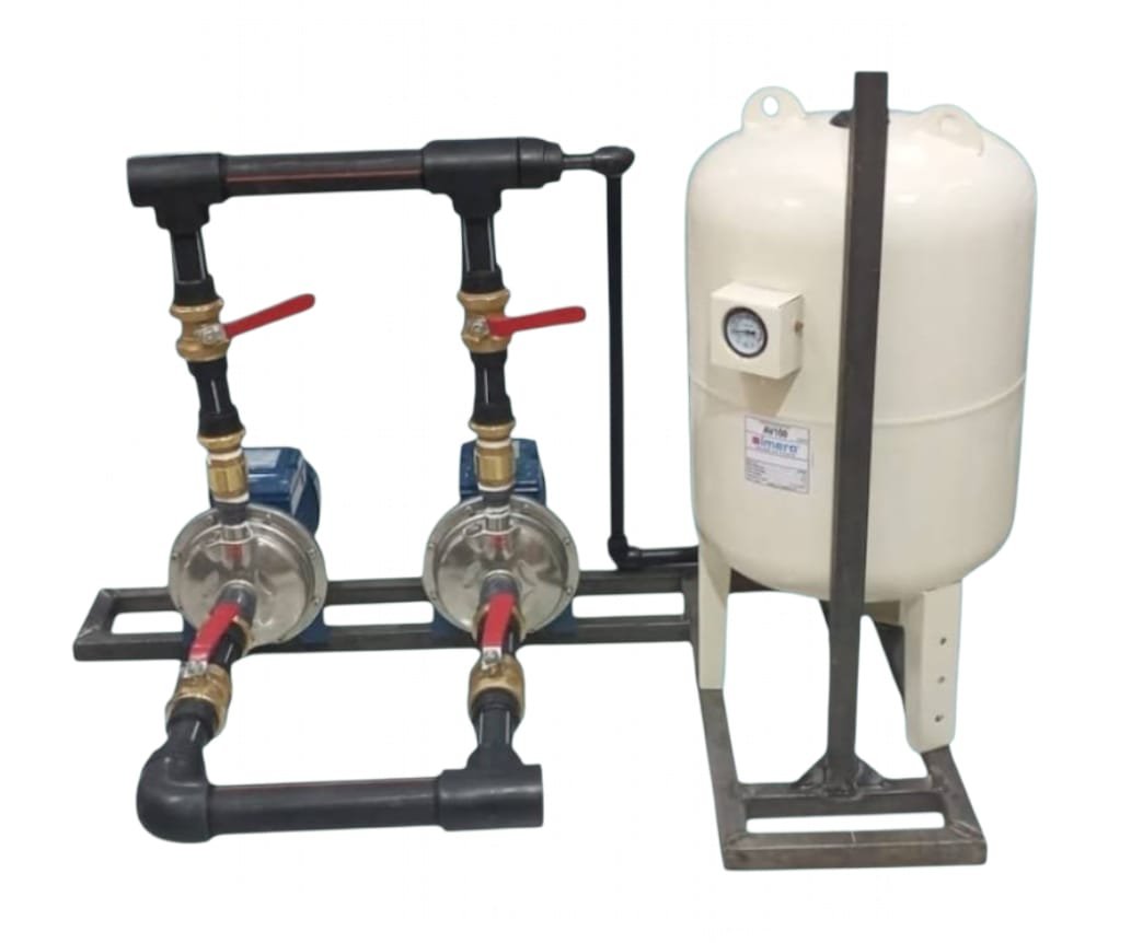 يتكون بوستر رفع مياه فلتر توب من طلمبتين رفع ضغط ستانلس ستيل عالية الكفاءة، وخزان ضغط مزود بعداد قياس دقيق، مع مجموعة محابس وعدم رجوع وهيكل معدني قوي يجمع كل المكونات في وحدة واحدة جاهزة للتركيب. هذا التصميم يضمن ثبات الضغط داخل الشبكة ويمنع الهبوط المفاجئ الذي يسبب أعطال لمحطات التحلية أو ضعفًا في وصول المياه للأدوار المرتفعة.