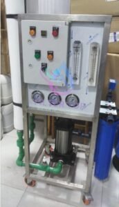 بالإضافة إلى نظام حقن كيماويات ومانع ترسيب لحماية الممبرين وإطالة عمره الافتراضي. كما تأتي المحطة مزودة بلوحة تحكم أوتوماتيكية، حساسات أمان، عدادات قياس ضغط وتدفق، وخزان مياه نقية لضمان تشغيل مستقر وآمن. بفضل التصميم العملي والشاسيه المصنوع من الاستانلس ستيل، توفر المحطة أداءً قويًا مع سهولة في التشغيل والصيانة