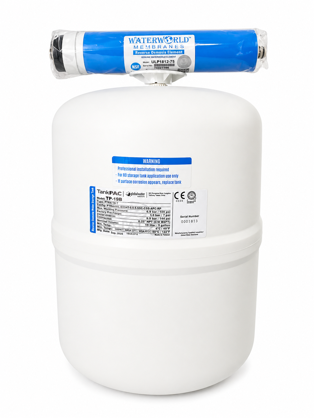 مرحلة الممبرين (قلب الفلتر): غشاء دقيق بمسامية 0.0001 ميكرون يفصل الأملاح الثقيلة، النترات، والفيروسات.